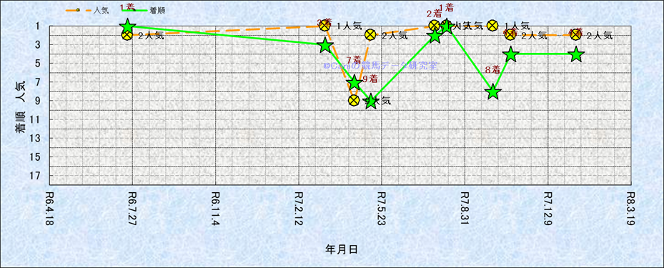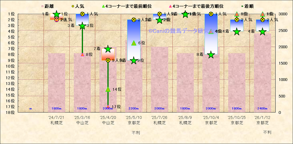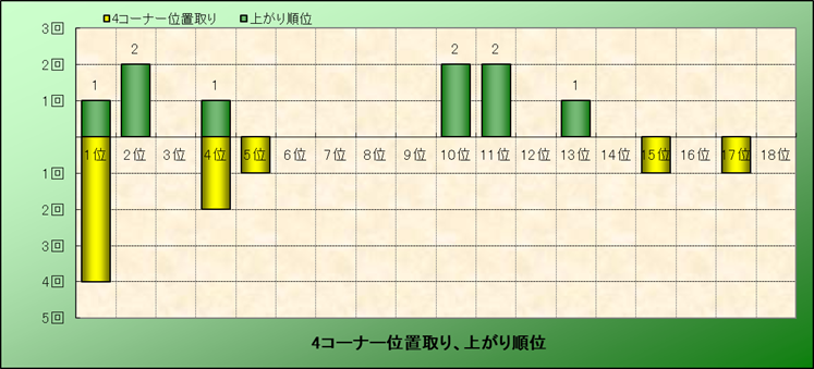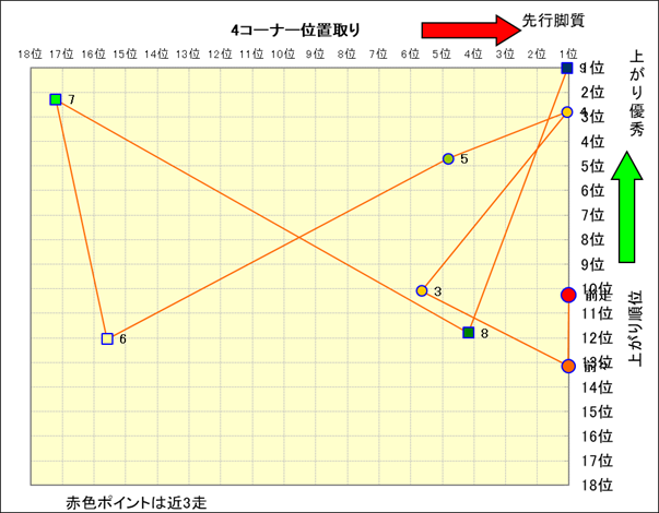 脚質解析 近20レースの4コーナーでの位置取りと上がり順位(頭数補正後) |