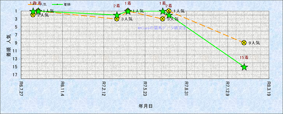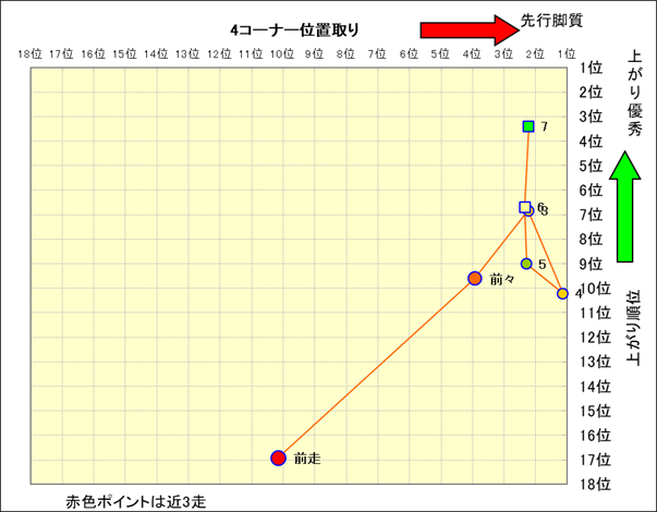 近走における4コーナーでの位置取りと上がり順位(頭数補正後) |