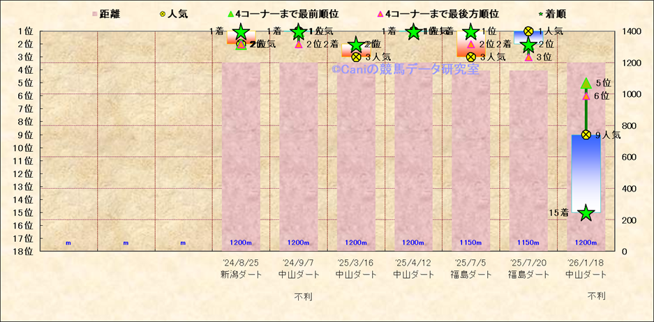 脚質解析 近20レースの4コーナーでの位置取りと上がり順位(頭数補正後) |