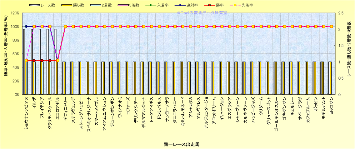 ライバル(相性)解析 同一レースに下記馬が出走した場合の成績とその馬に先着する先着率 |