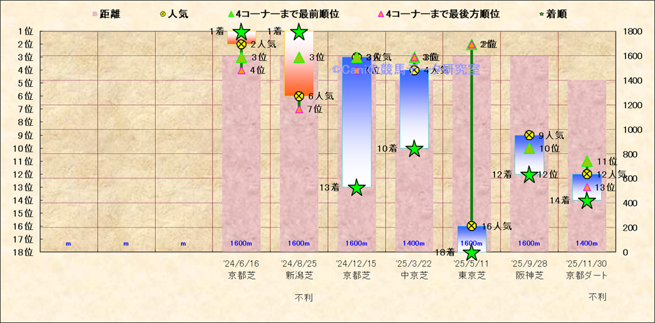 近10走 人気−着順-位置取りの推移 |