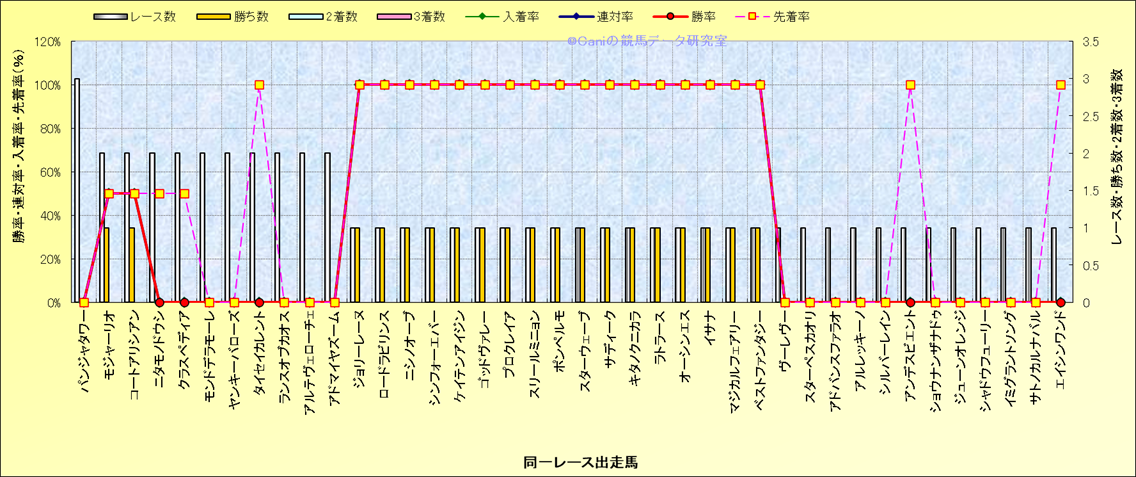 ライバル(相性)解析 同一レースに下記馬が出走した場合の成績とその馬に先着する先着率 |