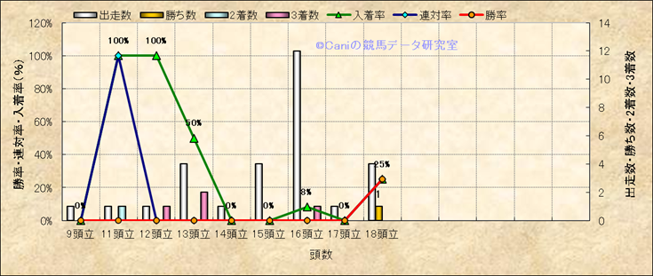 コース、最後の直線の高低差別成績(平地) |