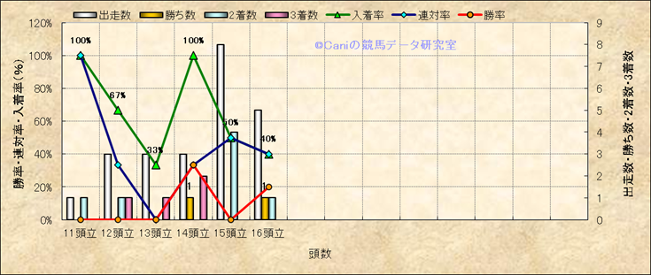 コース、最後の直線の高低差別成績(平地) |