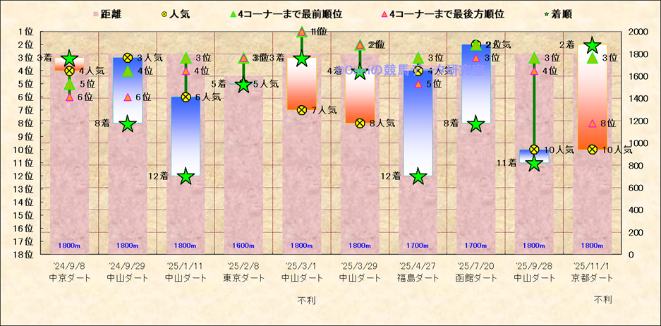 近10走 人気−着順-位置取りの推移 |