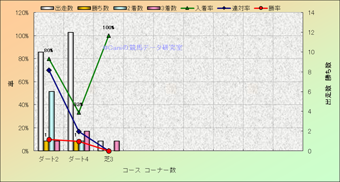 コース、コーナー数別成績(平地) |