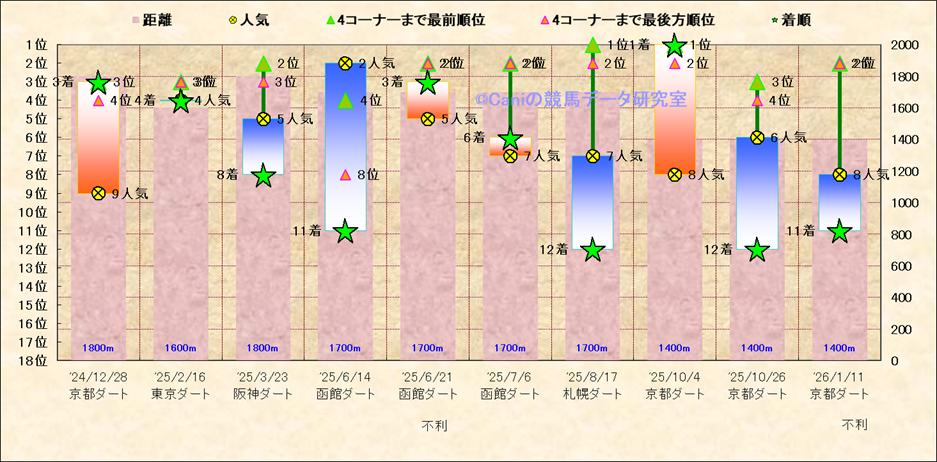 近10走 人気−着順-位置取りの推移 |