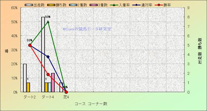 コース、コーナー数別成績(平地) |