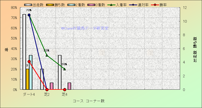 コース、コーナー数別成績(平地) |