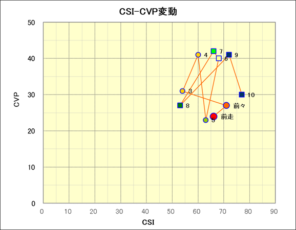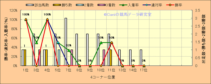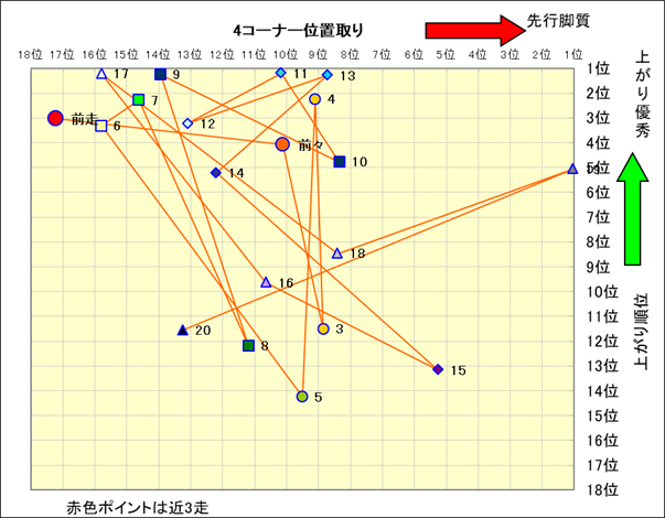 近走における4コーナーでの位置取りと上がり順位(頭数補正後) |