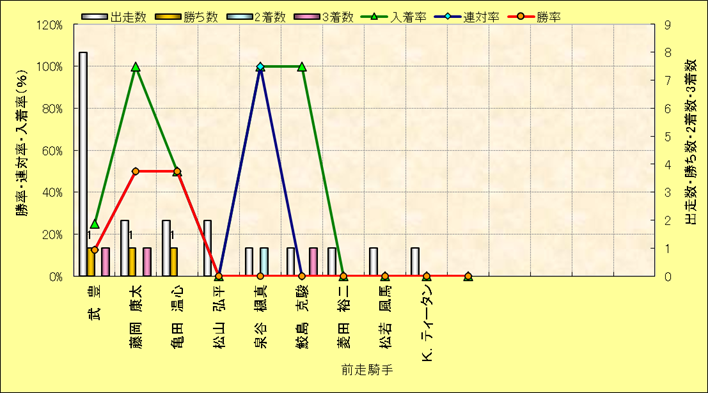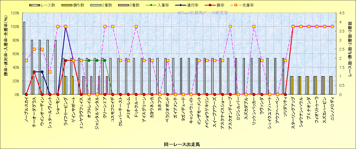 ライバル(相性)解析 同一レースに下記馬が出走した場合の成績とその馬に先着する先着率 |