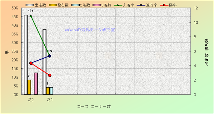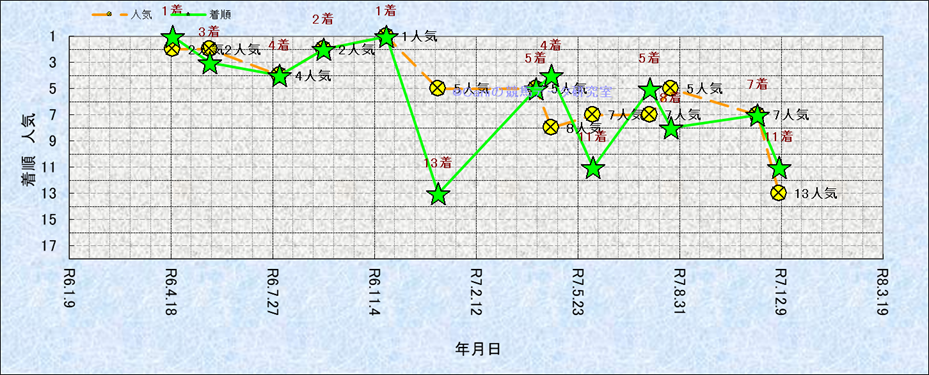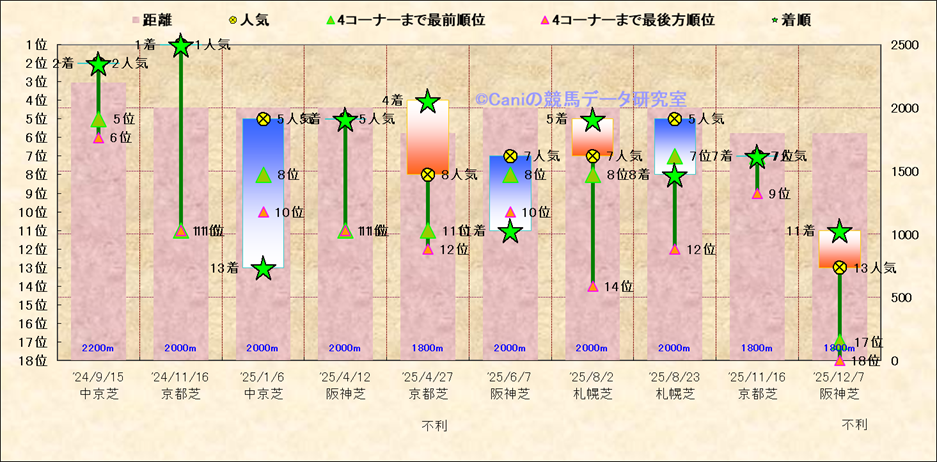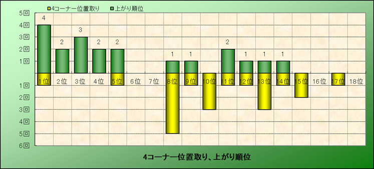 脚質解析 近20レースの4コーナーでの位置取りと上がり順位(頭数補正後) |
