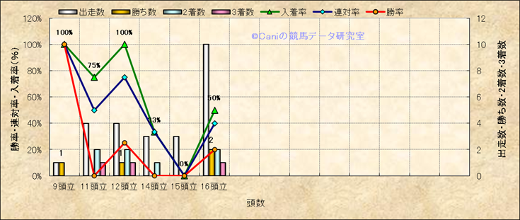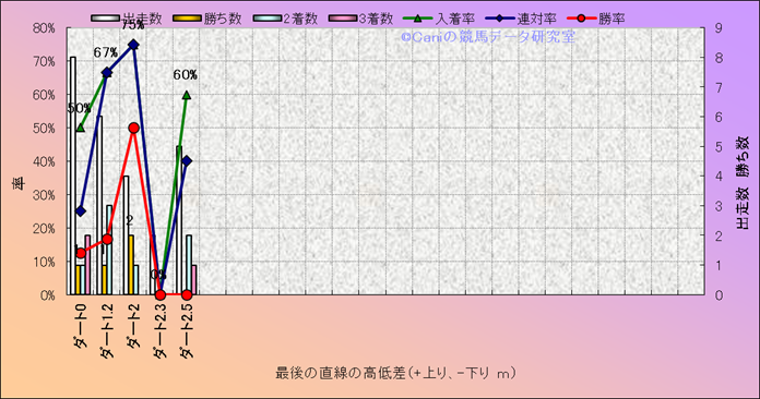 コース、最後の直線の高低差別成績(平地) |