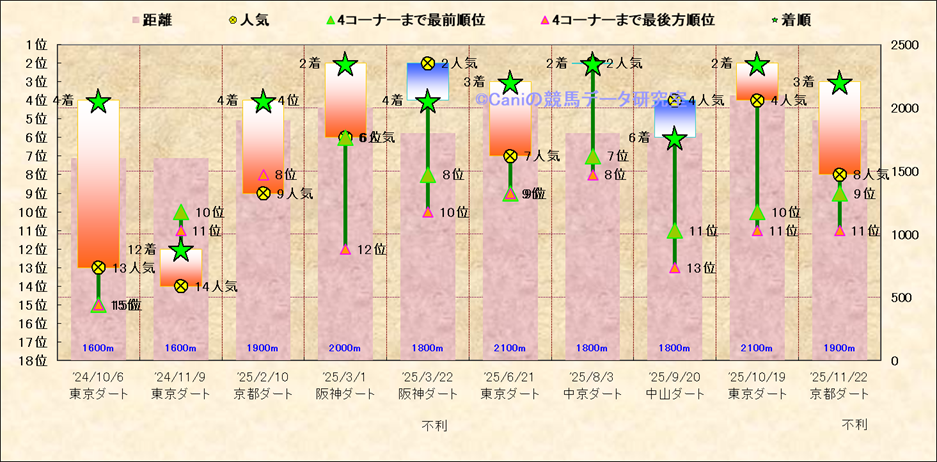 近10走 人気−着順-位置取りの推移 |