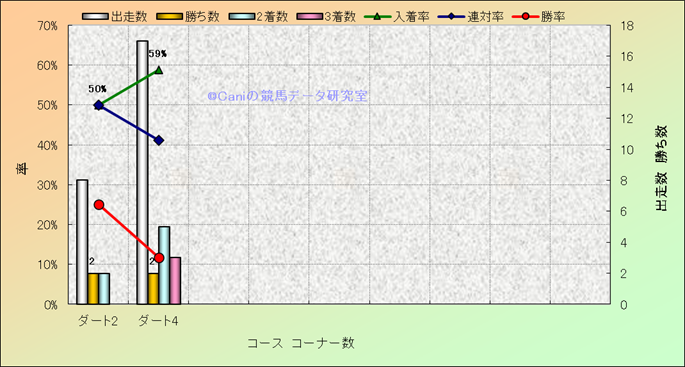 コース、コーナー数別成績(平地) |