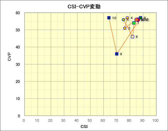 走行距離とCSI値の相関 |