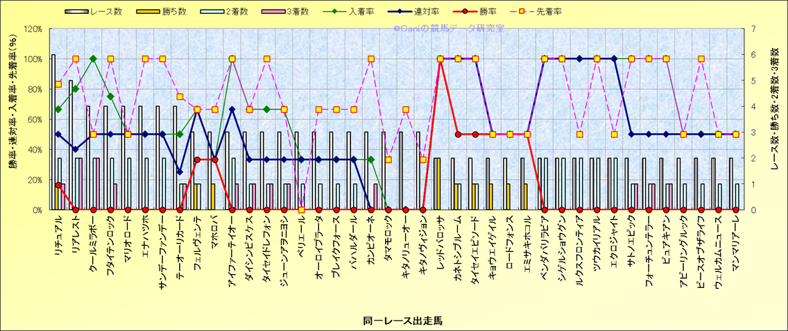 ライバル(相性)解析 同一レースに下記馬が出走した場合の成績とその馬に先着する先着率 |