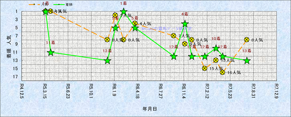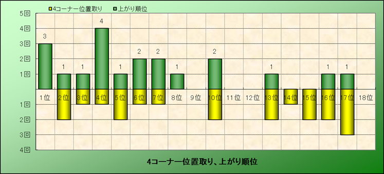 脚質解析 近20レースの4コーナーでの位置取りと上がり順位(頭数補正後) |
