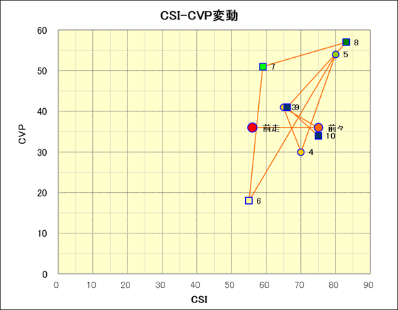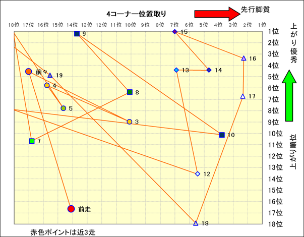 近走における4コーナーでの位置取りと上がり順位(頭数補正後) |