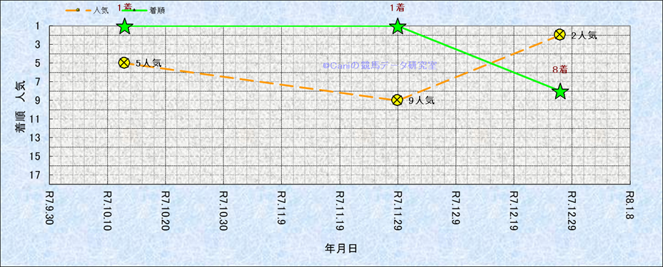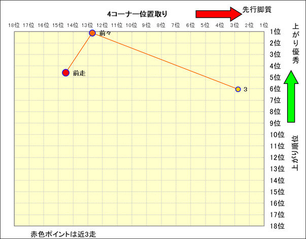 近走における4コーナーでの位置取りと上がり順位(頭数補正後) |