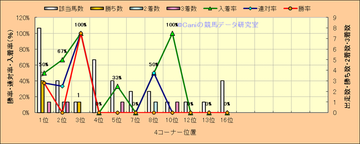 近走における4コーナーでの位置取りと上がり順位(頭数補正後) |