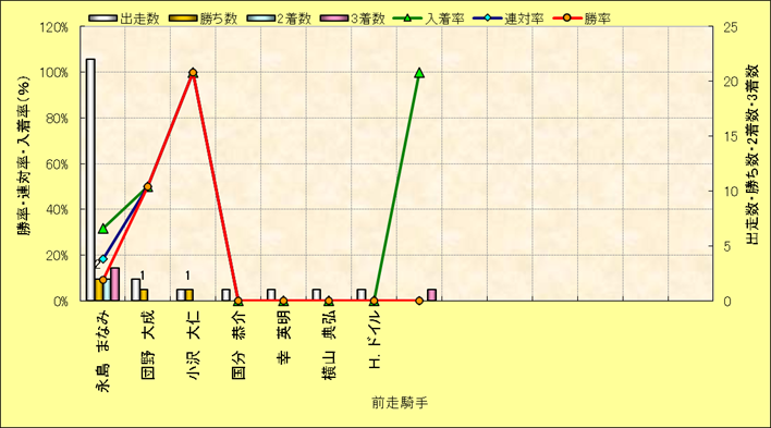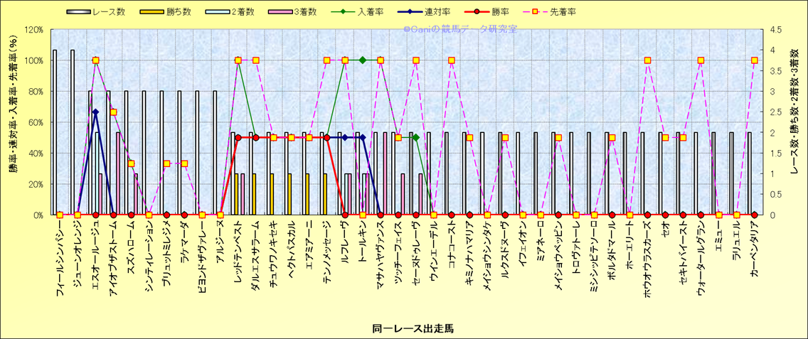 ライバル(相性)解析 同一レースに下記馬が出走した場合の成績とその馬に先着する先着率 |