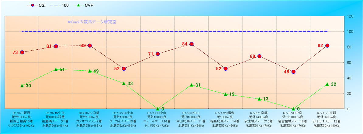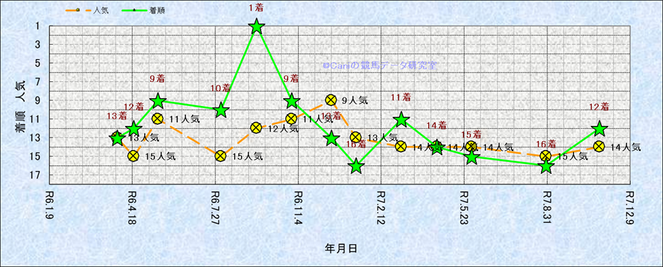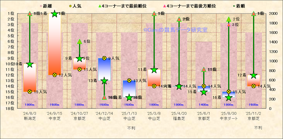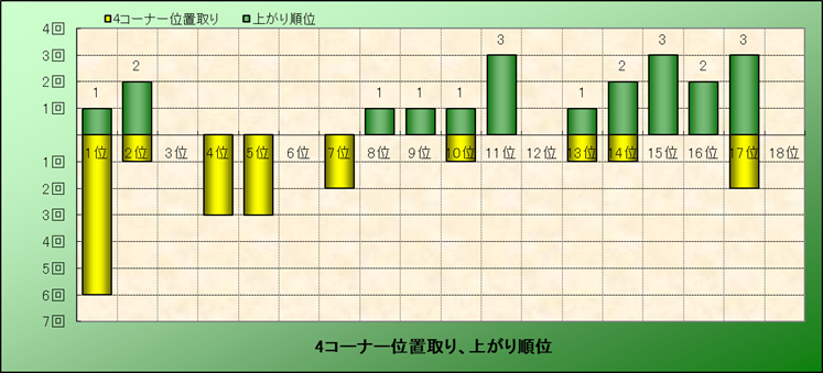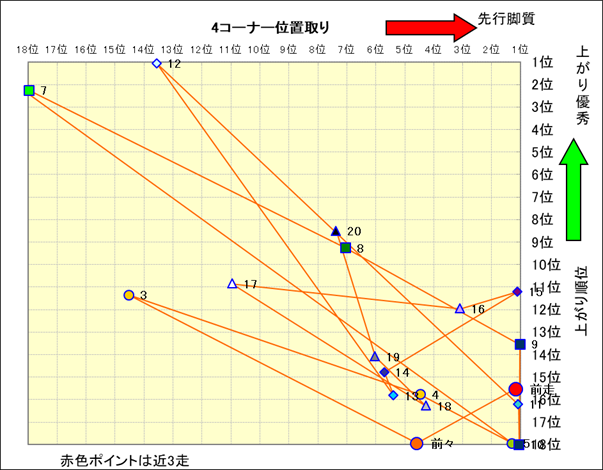 脚質解析 近20レースの4コーナーでの位置取りと上がり順位(頭数補正後) |