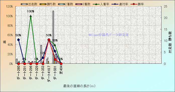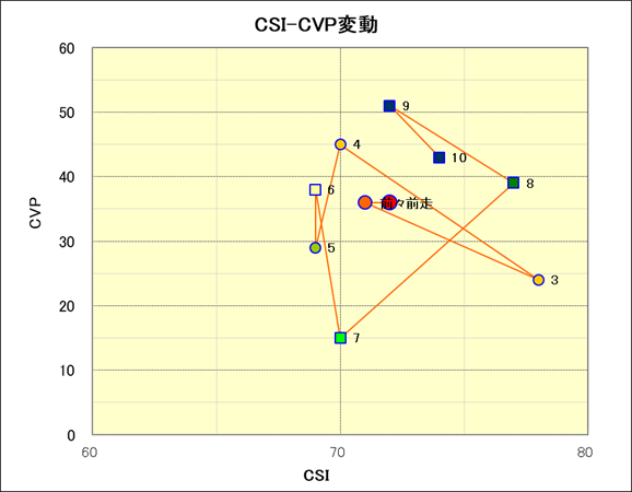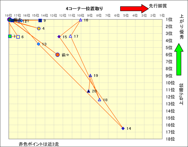 近走における4コーナーでの位置取りと上がり順位(頭数補正後) |