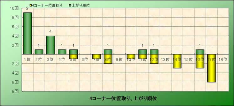 脚質解析 近20レースの4コーナーでの位置取りと上がり順位(頭数補正後) |