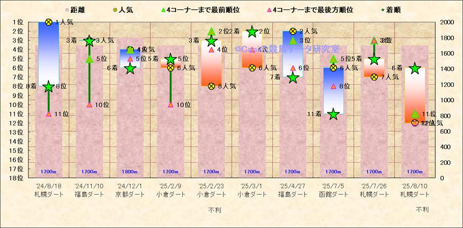 脚質解析 近20レースの4コーナーでの位置取りと上がり順位(頭数補正後) |