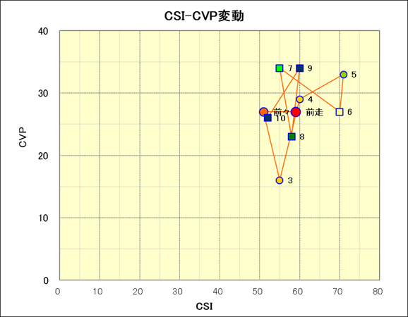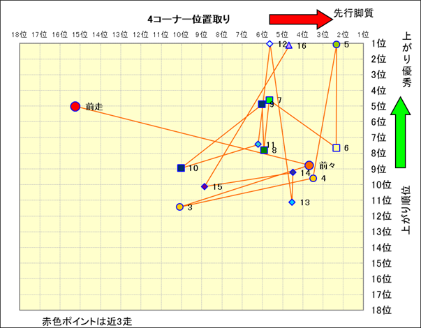 近走における4コーナーでの位置取りと上がり順位(頭数補正後) |
