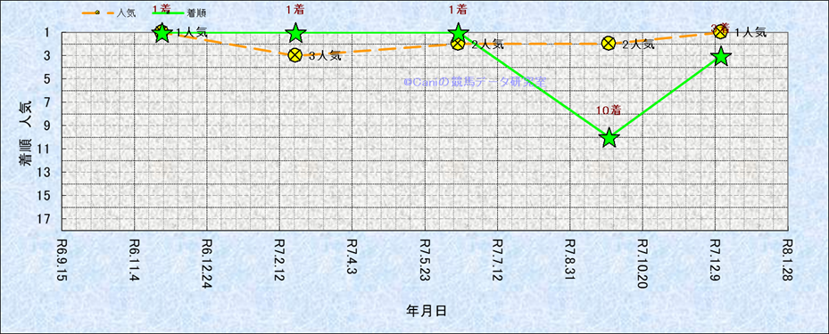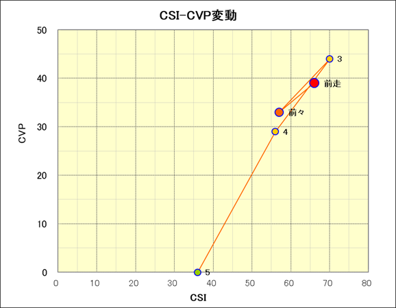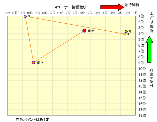 近走における4コーナーでの位置取りと上がり順位(頭数補正後) |