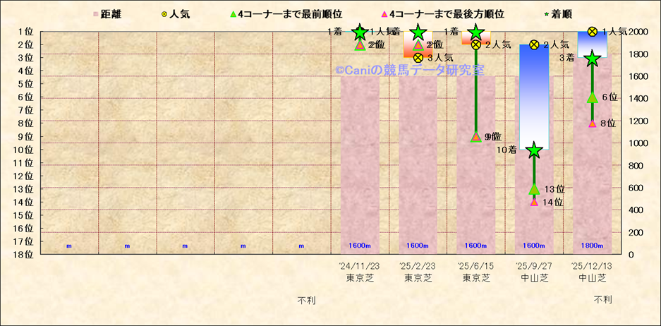 脚質解析 近20レースの4コーナーでの位置取りと上がり順位(頭数補正後) |
