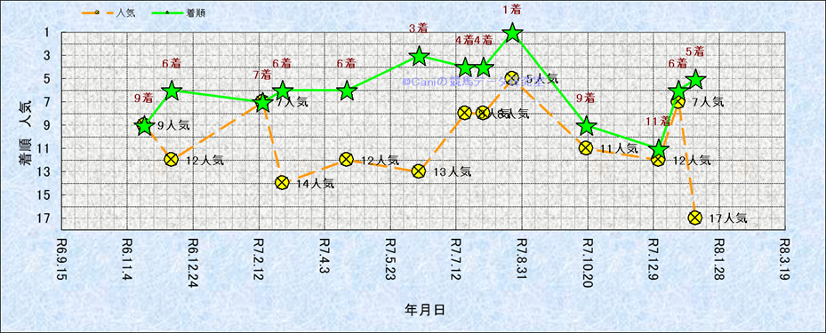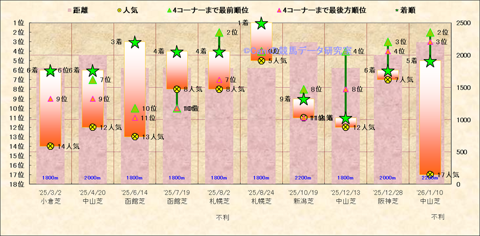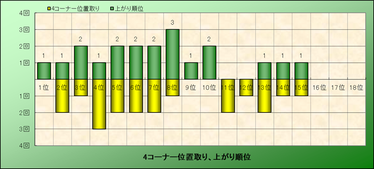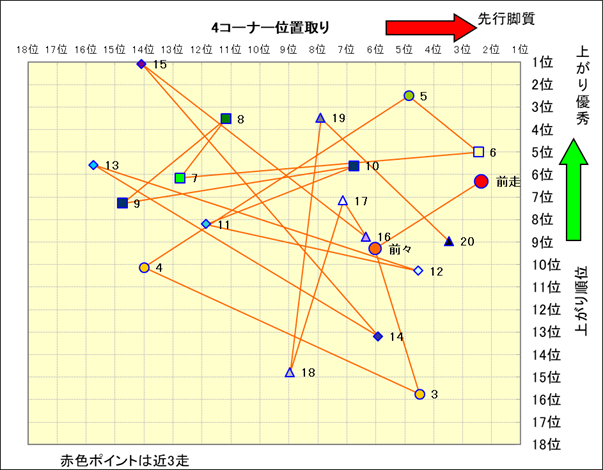脚質解析 近20レースの4コーナーでの位置取りと上がり順位(頭数補正後) |