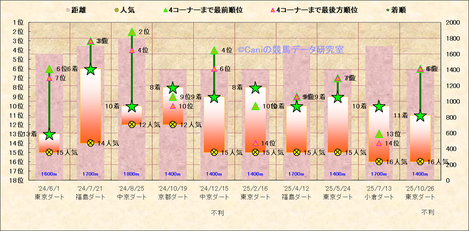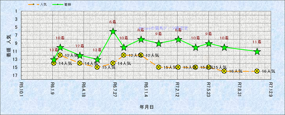 近10走 人気−着順-位置取りの推移 |