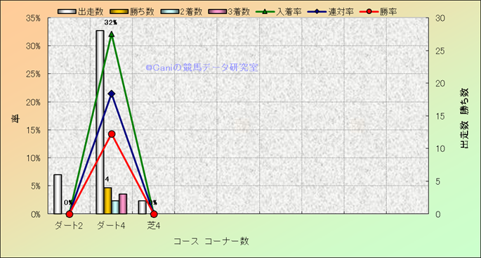 コース、コーナー数別成績(平地) |