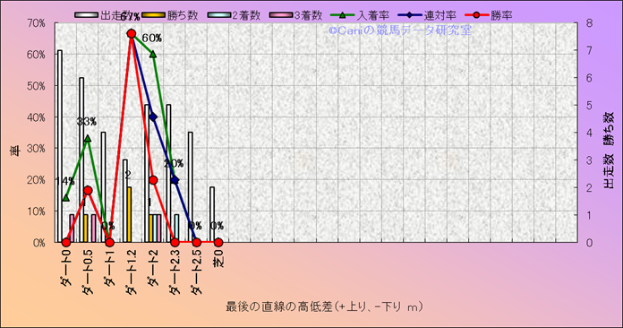 コース、最後の直線の高低差別成績(平地) |