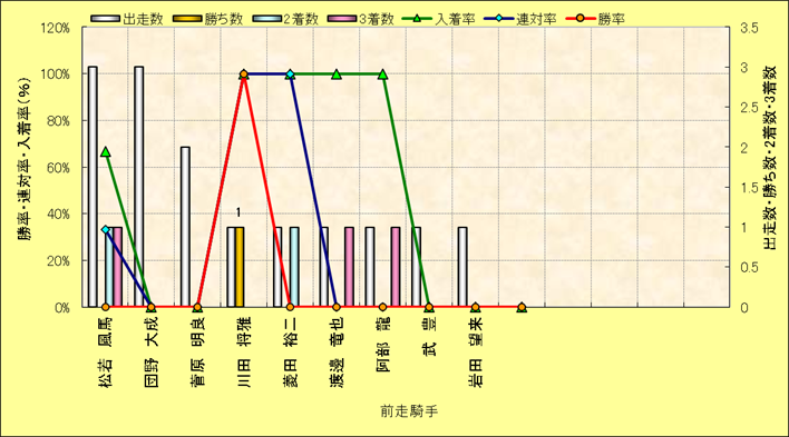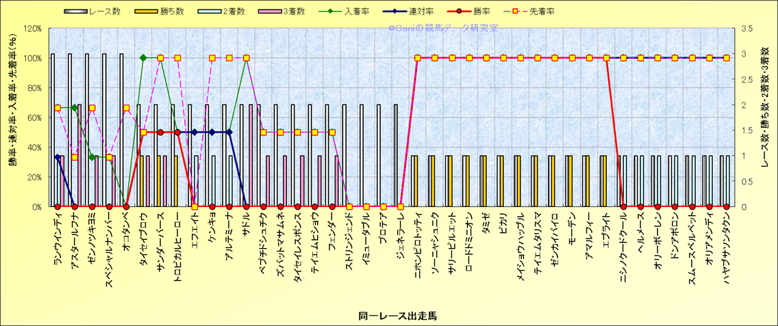 ライバル(相性)解析 同一レースに下記馬が出走した場合の成績とその馬に先着する先着率 |