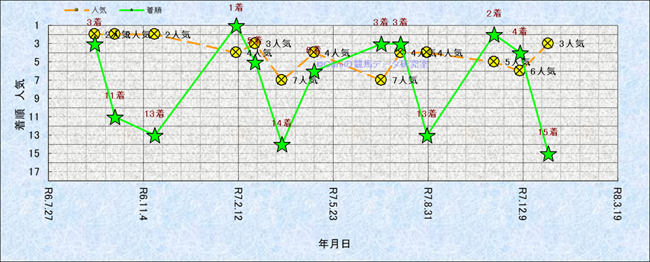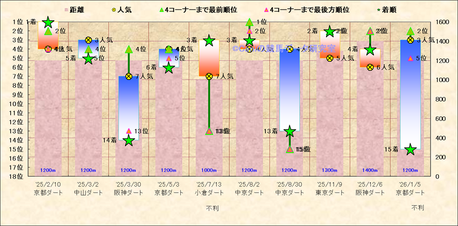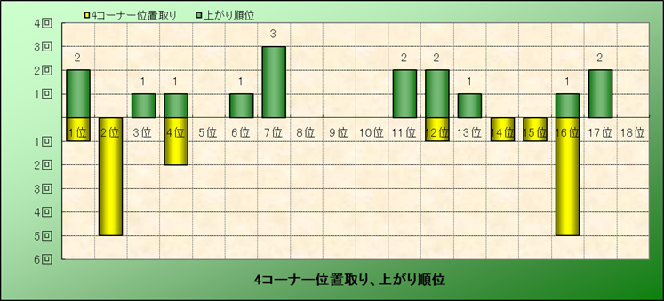 脚質解析 近20レースの4コーナーでの位置取りと上がり順位(頭数補正後) |