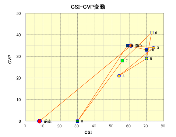 近走における4コーナーでの位置取りと上がり順位(頭数補正後) |
