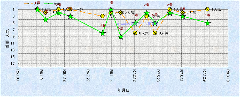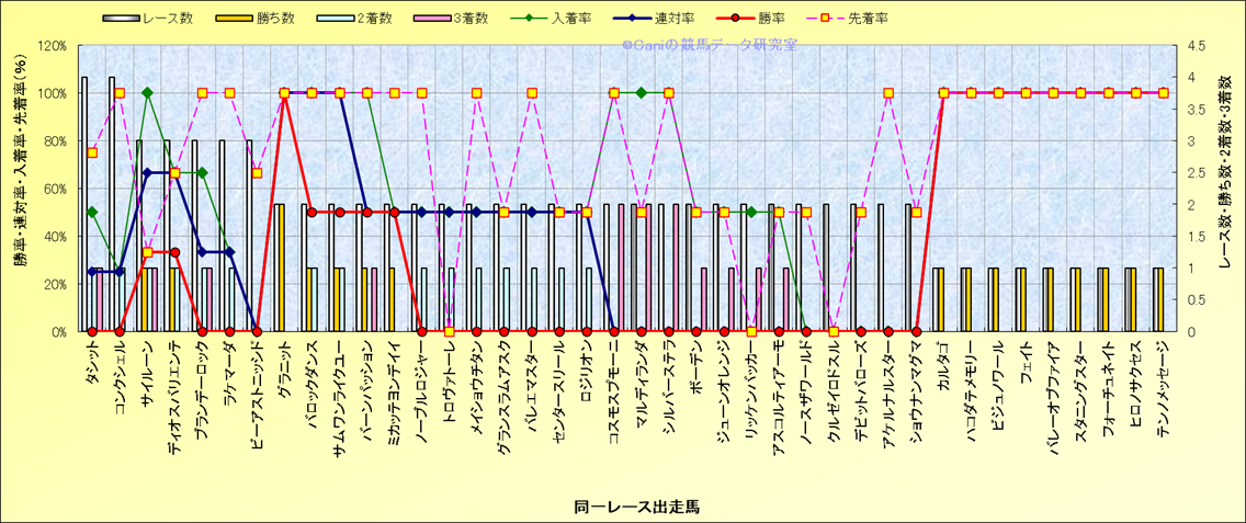 ライバル(相性)解析 同一レースに下記馬が出走した場合の成績とその馬に先着する先着率 |