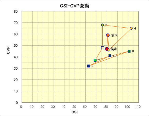 近走における4コーナーでの位置取りと上がり順位(頭数補正後) |