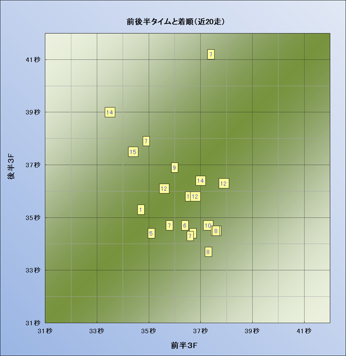 脚質解析 近20レースの4コーナーでの位置取りと上がり順位(頭数補正後) |