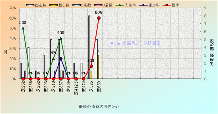 コース、最後の直線の長さ別成績(平地) |