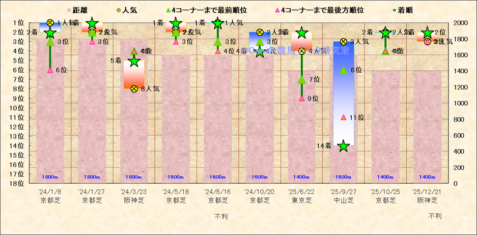 近10走 人気−着順-位置取りの推移 |