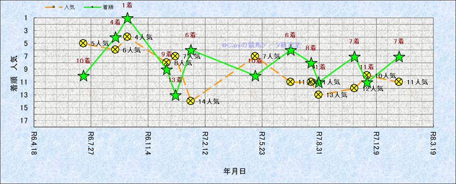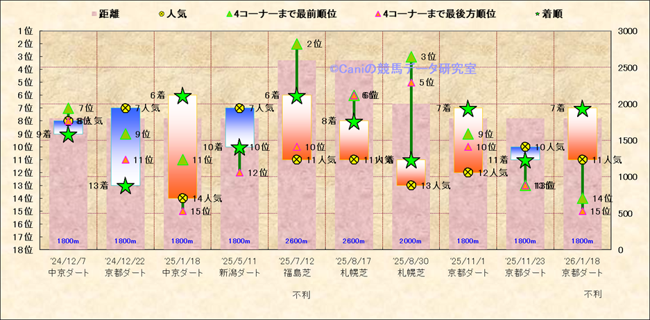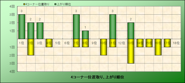 脚質解析 近20レースの4コーナーでの位置取りと上がり順位(頭数補正後) |