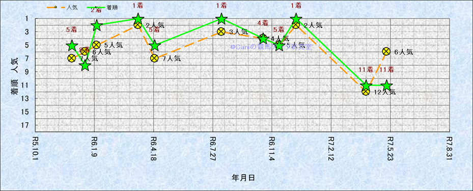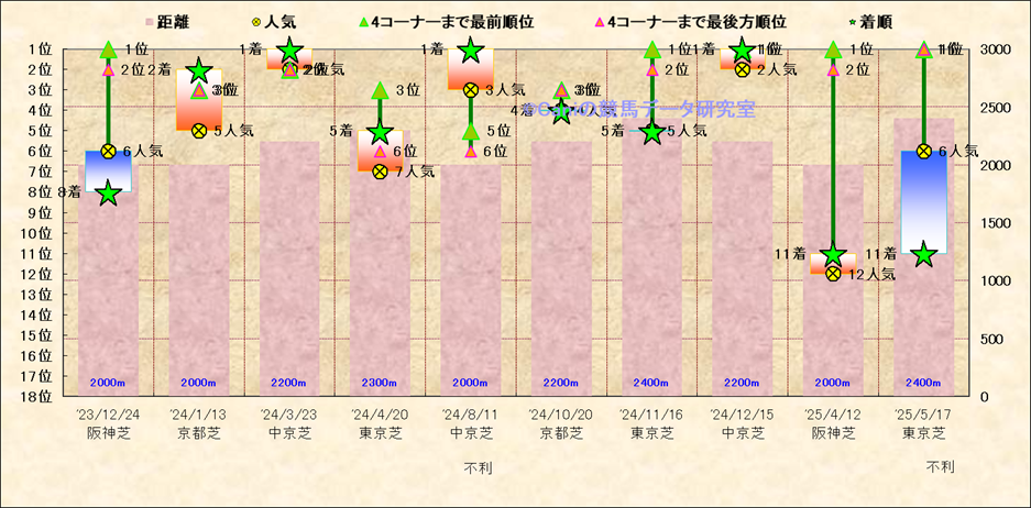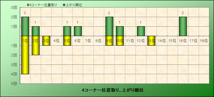 脚質解析 近20レースの4コーナーでの位置取りと上がり順位(頭数補正後) |