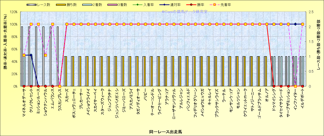 ライバル(相性)解析 同一レースに下記馬が出走した場合の成績とその馬に先着する先着率 |