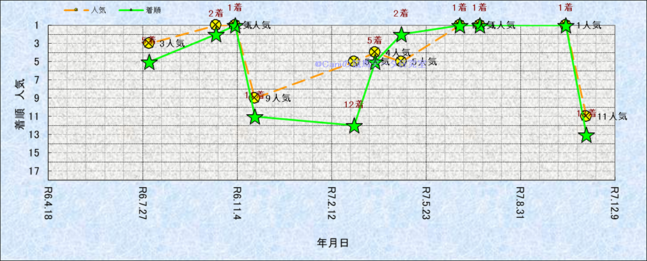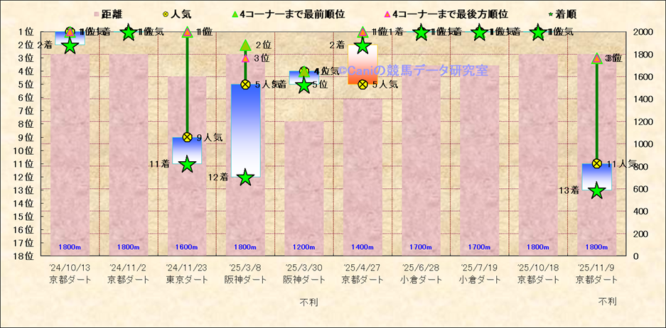 脚質解析 近20レースの4コーナーでの位置取りと上がり順位(頭数補正後) |