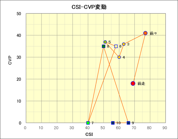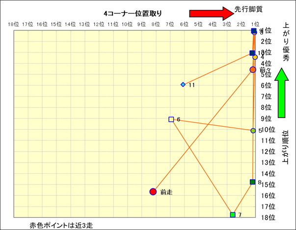 近走における4コーナーでの位置取りと上がり順位(頭数補正後) |